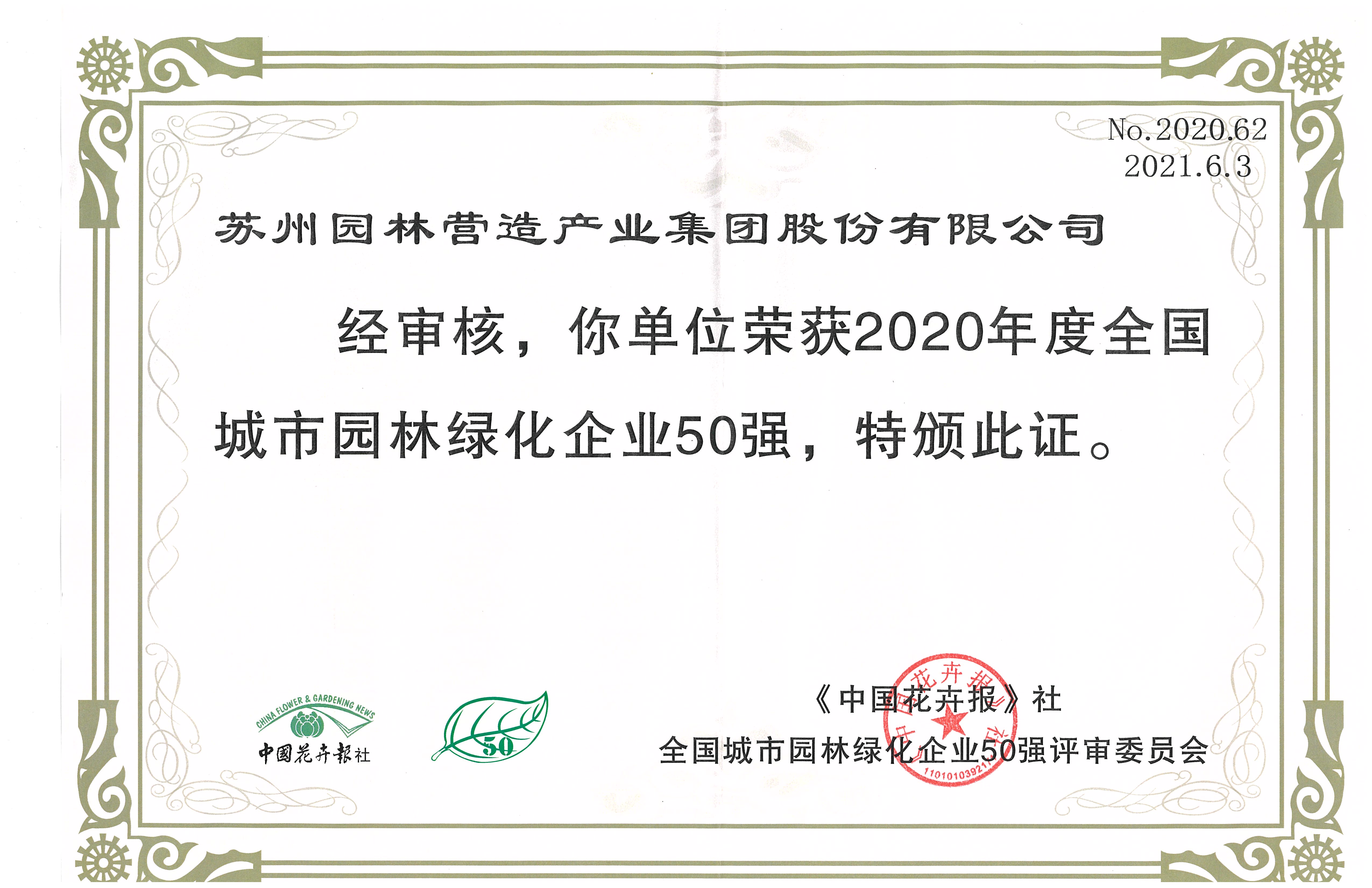 蘇州園林營造產業集團股份有限公司受邀參會,并獲得頒發“2020年度中國杰出經營效率園林企業”、“2020年度全國城市園林綠化企業50強”大獎。